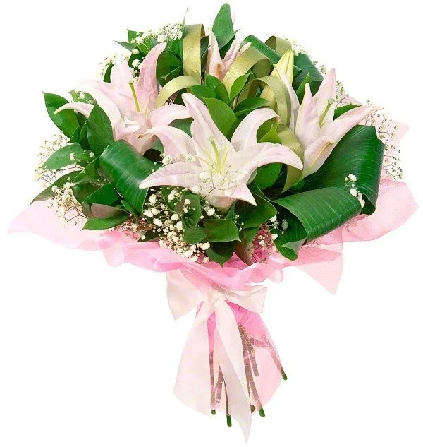 Лилия, гипсофила, упаковка, лента