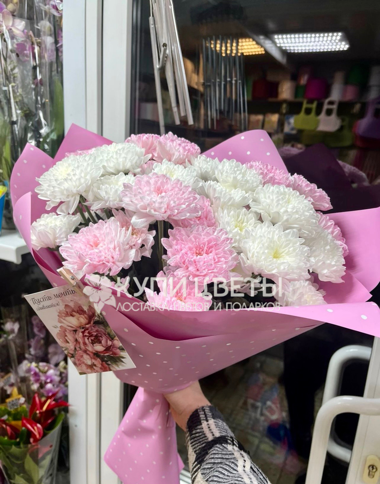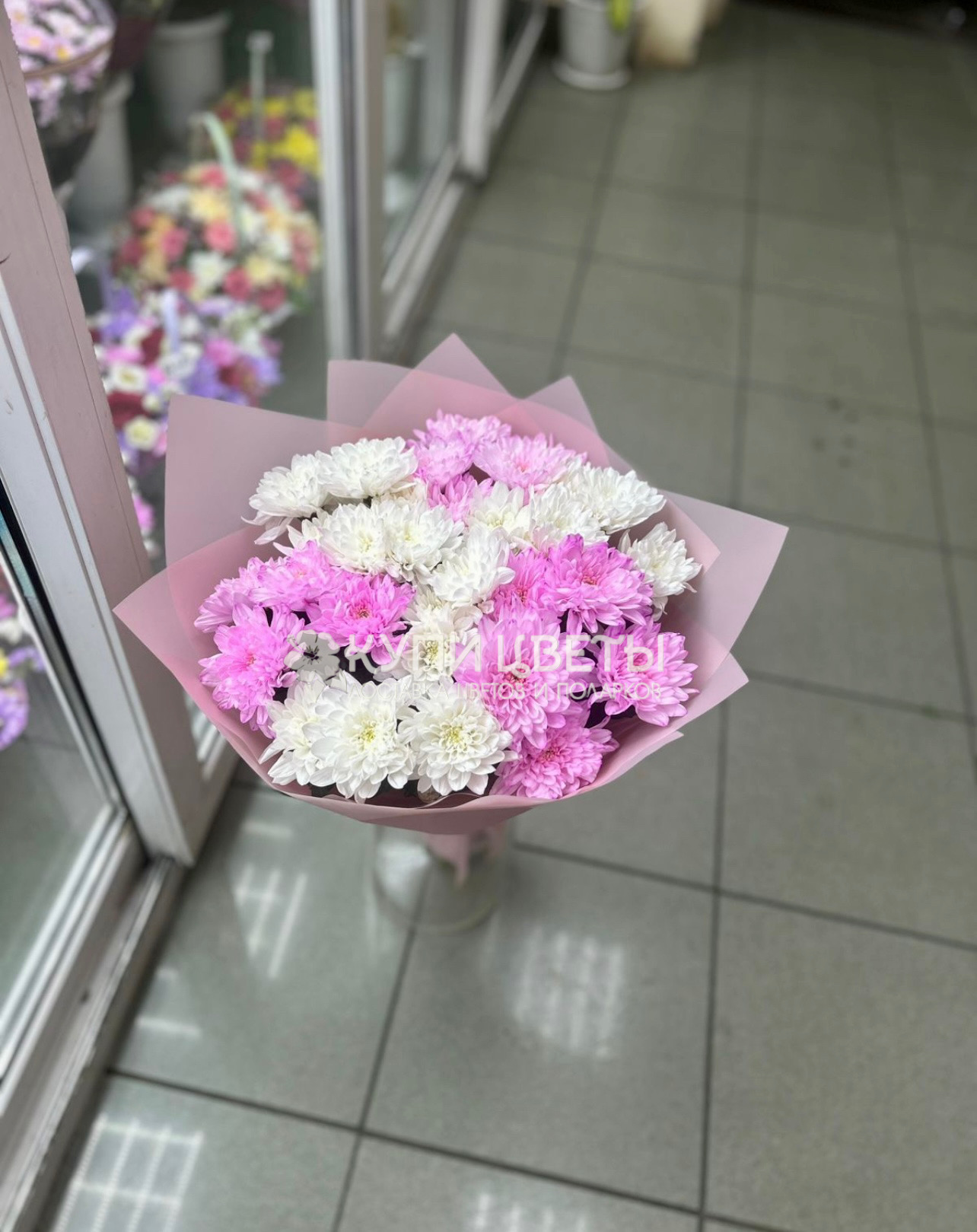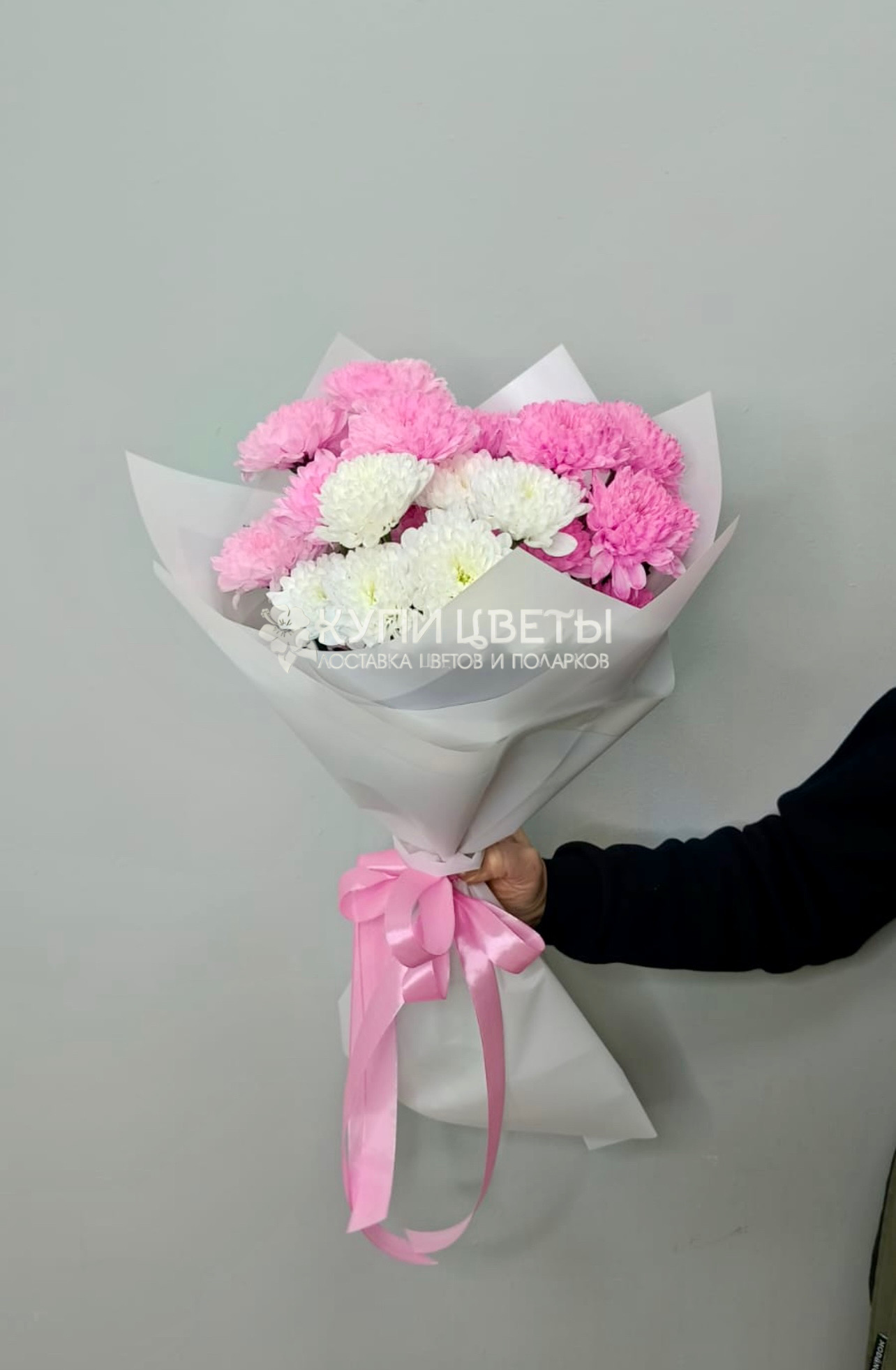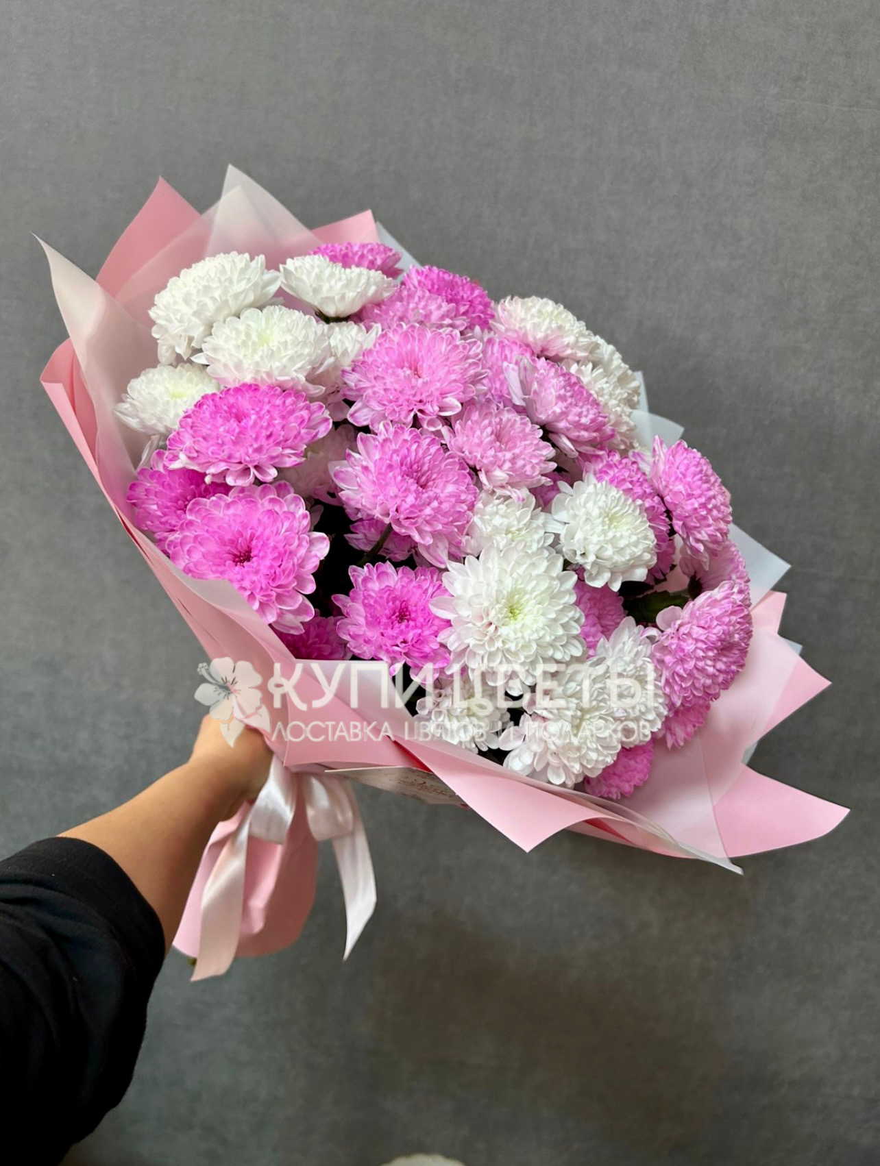 Кустовые хризантемы,упаковка,лента |