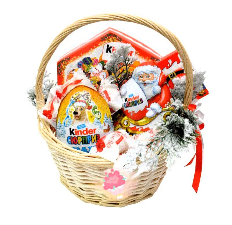 Сладкая новогодняя корзина со сладостями