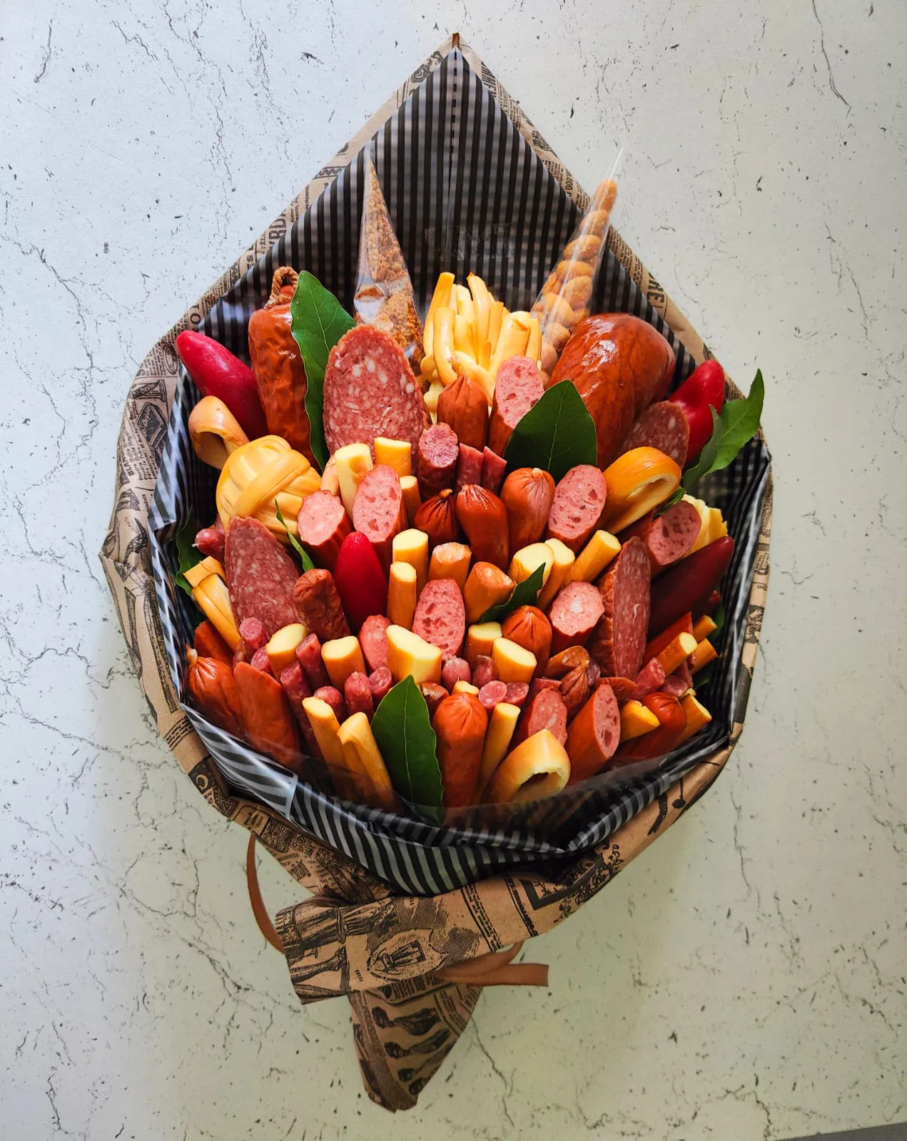 Букет из колбасок не только хорош для подачи на стол, но и станет ярким акцентом на любом празднике. Его можно использовать как закуску на вечеринки, корпоративы или семейные торжества. Такой оригинальный подход к традиционным закускам обязательно вызовет восторг и удивление у гостей, превращая обычное угощение в кулинарную арт-выставку, которая порадует не только глаз, но и вкус!