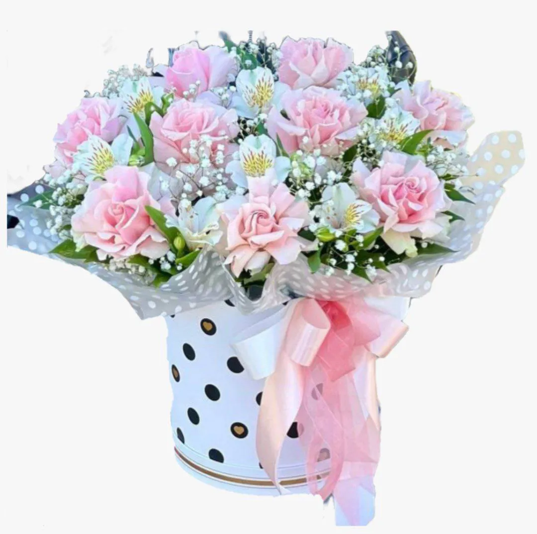 Шляпная коробка, выполненная в стильном дизайне, станет не только прекрасным обрамлением для этой удивительной цветочной композиции, но и оригинальным элементом декора в интерьере. Позвольте себе или своим близким окунуться в мир прекрасного с этой шляпной коробкой цветов, полных эмоций и гармонии. Порадуйте себя и своих любимых изящным подарком, подарив моменты счастья и эстетического наслаждения!