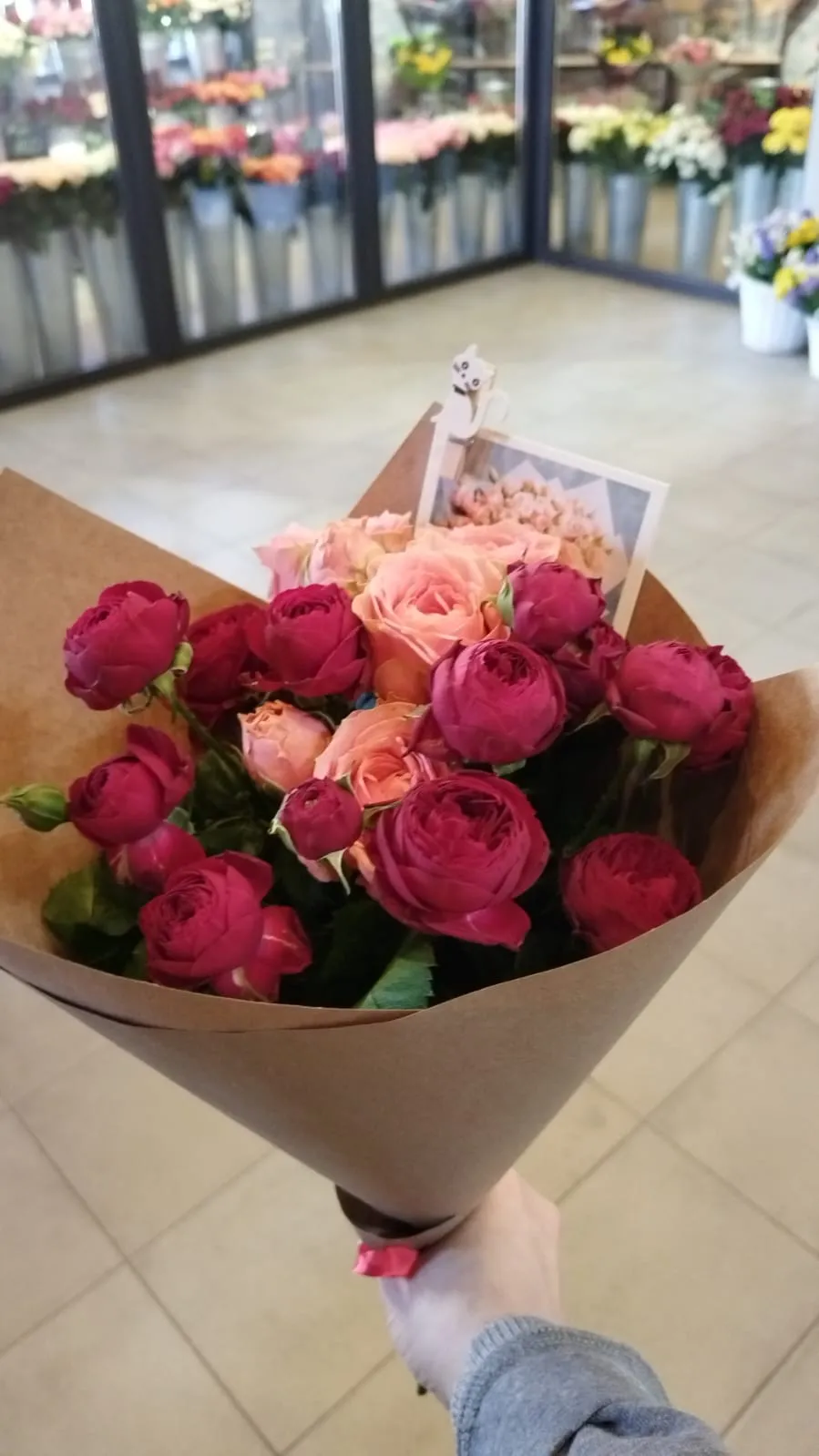 Кустовая роза, упаковка, лента |