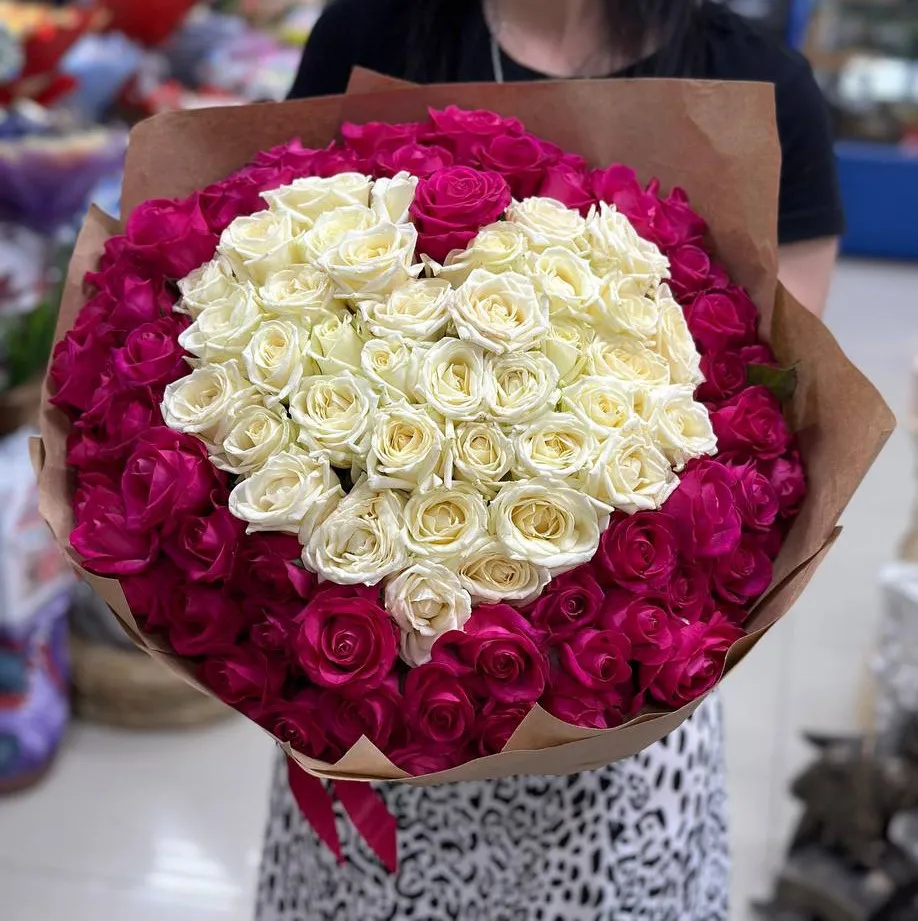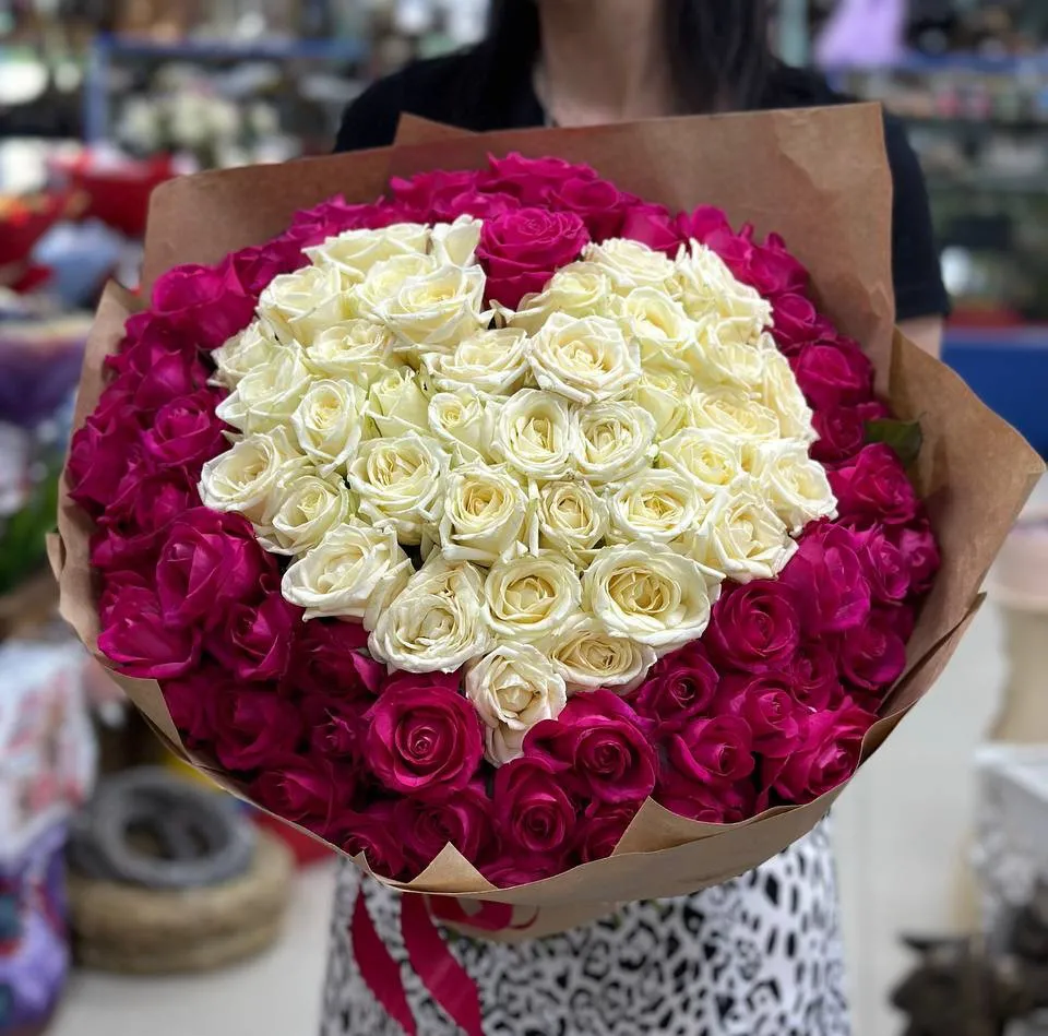101 белая и розовая роза |
